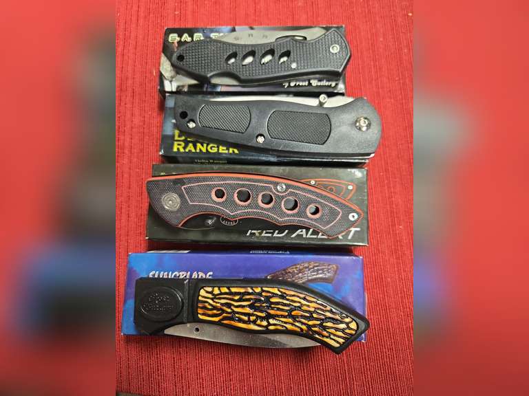 Frost Cutlery Sling Blade Sidelock, Secret Double Agent Red Alert, Delta Ranger and S.A.R. Tactical Search & Rescue Knives