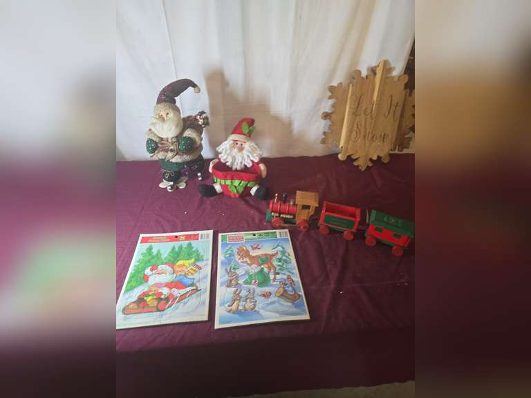 LOT 35 - Wooden train and other Christmas decorations