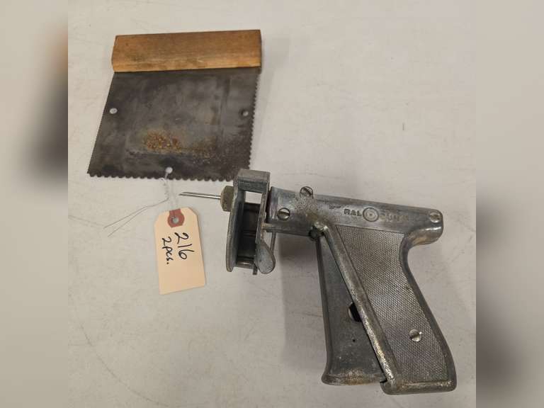LOT 216 - Ral gun animal pellet gun, flooring trowel
