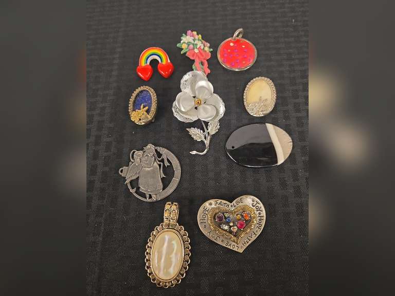 Brooches, pendants, etc