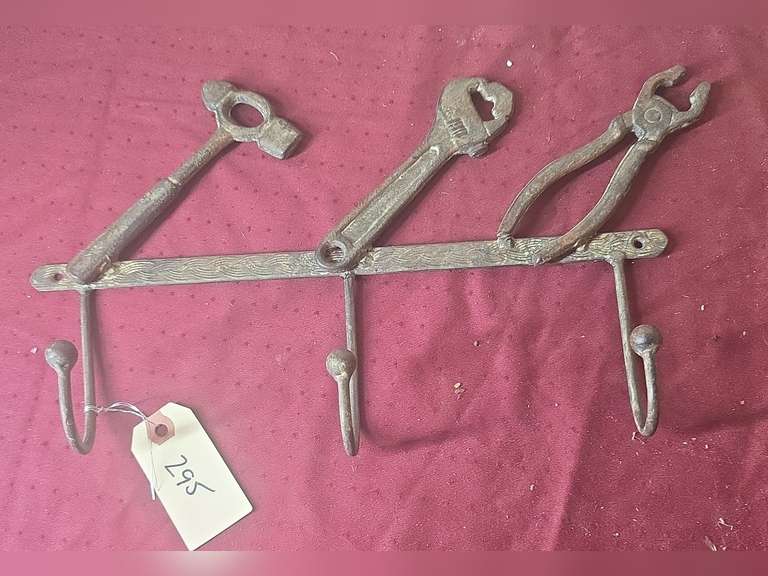 LOT 295 - Metal coat hangers, handmade with old tools.