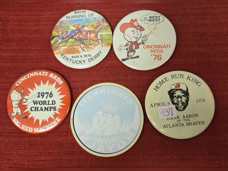 Pins - Hank Aaron, '76 Cincinnati Reds, '74 Kentucky Derby,