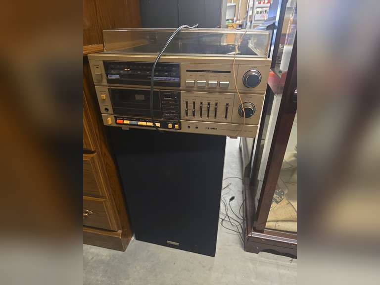 Fisher audio component system MC-720, with 2 speakers, AM/FM, cassette, turntable, all came on when tested