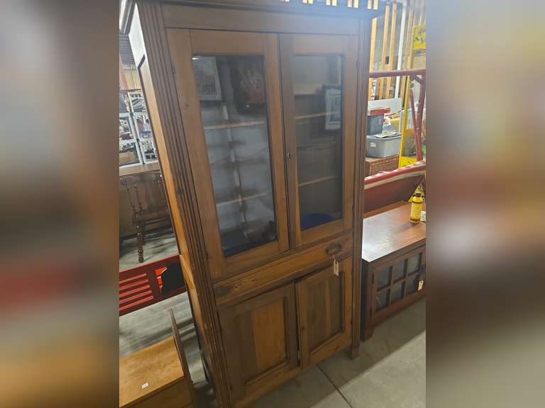 Antique wooden kitchen cabinet, glass doors, approximately 14x34x70