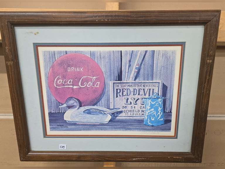 LOT 539 - Framed, signed Robert Clontz, numbered 97/950, Coca-Cola print, approximately 18x23
