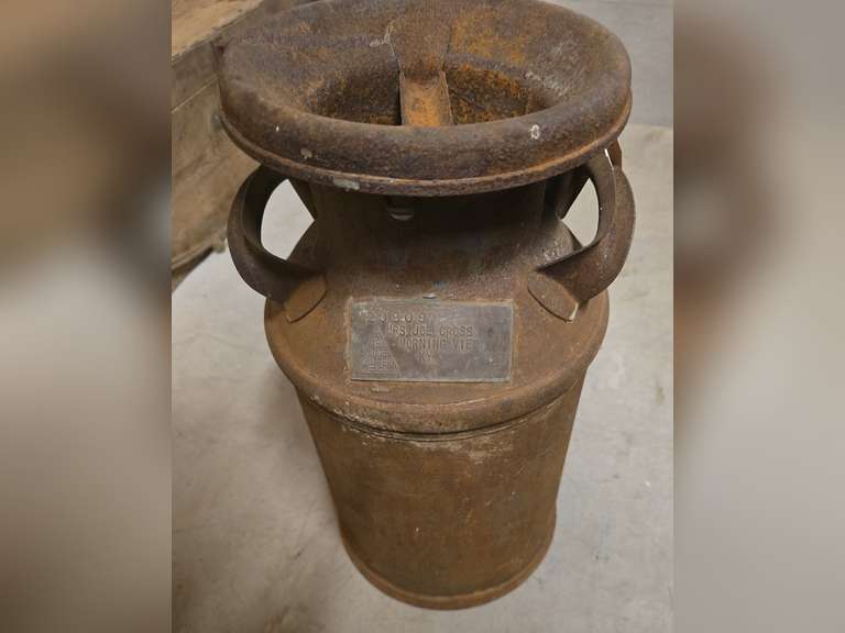 LOT 537 - 5 Gallon cream can with shipper plate, Mrs. Joe Cross, Morning View, Ky