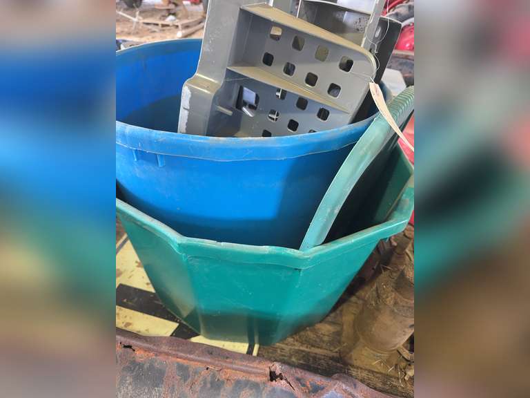 LOT 1025 - Plastic totes and wall hanging tool organizers