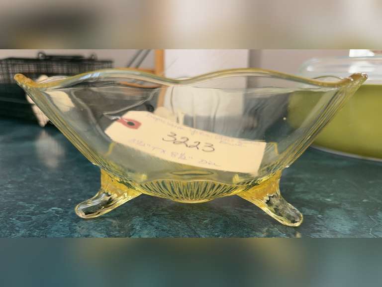 LOT 3223 - Depression yellow glass footed bowl, three and half inch tall by 8 1/2 inches diameter