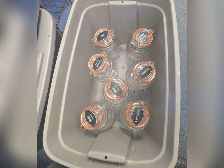 LOT 270 - 12 Barrel canisters in 18 gallon tote with lid