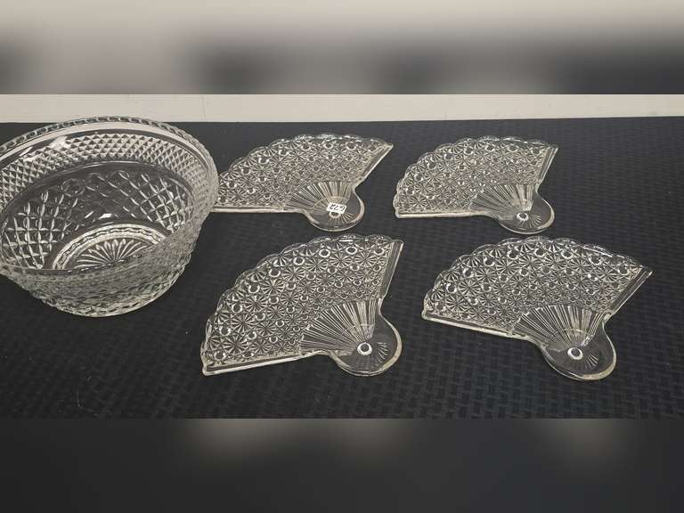 LOT 672 - Anchor Hocking Wexford bowl, 4 fan trays