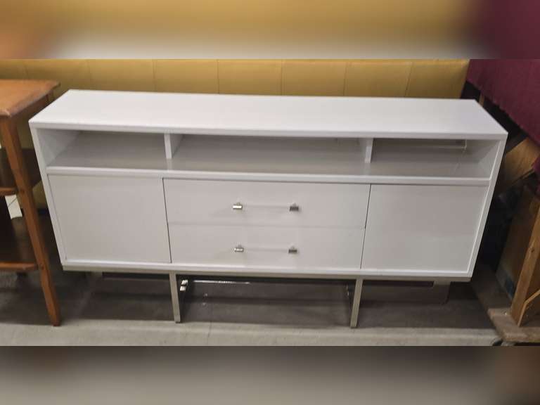 White Corina media console with chrome legs. Made in Italy, approximately 18x60x29. Looks new.