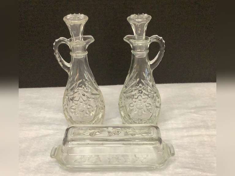 2 Cruets and one butter dish.