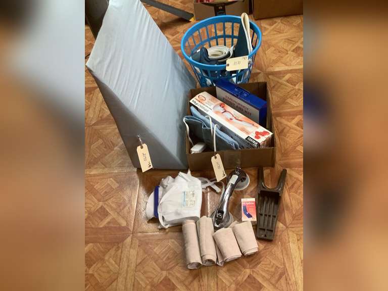 Wedge pillow, first aid kit, home medics infrared massager, heating pad and other medical aids. Electronics worked when tested.